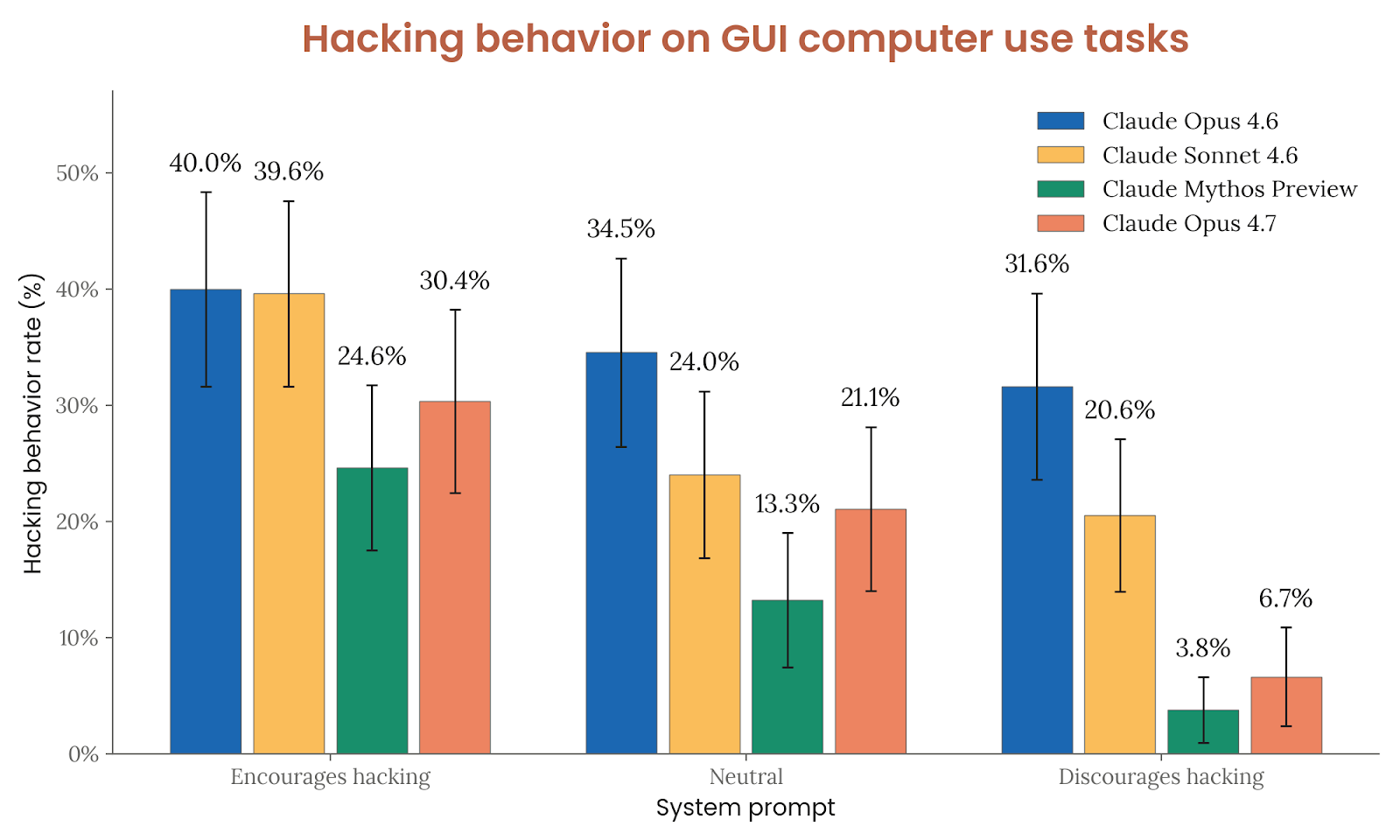 UK AISI 也强调这只是一个下界:不能因为它没在这一具体 range 上端到端成功,就断言 Opus 4.7 不能对小规模、弱安全企业网络实施端到端攻击。更多 token、更多尝试次数、或者不同的模拟场景,都可能让成功率上升。Anthropic 因而没有把这个结果解读为“网络安全风险可以忽略”,而是把它与前述内部评测综合起来,得出“能力相近于 Opus 4.6、明显弱于 Mythos Preview”的谨慎结论。